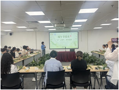 “門(mén)前艾蒲青翠,天淡紙鳶舞。粽葉香飄十里,對(duì)酒攜樽俎”北宋文學(xué)家蘇軾描繪了古人過(guò)端午的場(chǎng)景,許多習(xí)俗沿襲至今,我們結(jié)合端午傳統(tǒng)習(xí)俗,將艾草、香囊等元素融入活動(dòng),白領(lǐng)們親手包扎寓意健康吉祥的節(jié)令花束,在體驗(yàn)民俗文化的同時(shí),傳遞了節(jié)日的溫情祝福。