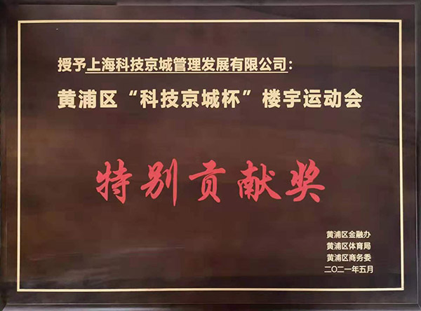 開(kāi)幕式上,黃浦區(qū)副區(qū)長(zhǎng)李原為支持本屆樓宇運(yùn)動(dòng)會(huì)的上??萍季┏枪芾戆l(fā)展有限公司頒發(fā)了“特別貢獻(xiàn)獎(jiǎng)”。