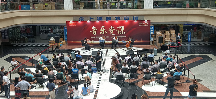 2021年7月13日,為慶祝中國(guó)共產(chǎn)黨成立100周年,由南京東路街道黨工會(huì)、辦事處與上海市工人文化宮茉莉花交響樂團(tuán)聯(lián)合出品的“音樂黨課”在上??萍季┏侨箻且粯谴髲d順利舉辦。本場(chǎng)演出由上海市工人文化宮茉莉花交響樂團(tuán)首席王瀚悅、一提琴聲部長(zhǎng)朱堅(jiān)翀、中提琴聲部張澤遠(yuǎn)、大提琴聲部溫澤寒四名音樂家共同演奏,通過講演結(jié)合的藝術(shù)形式,以史串曲、以琴敘史,將歷史的厚重和音樂的壯闊融合在一起,用音樂講述中國(guó)故事,唱響時(shí)代聲音。